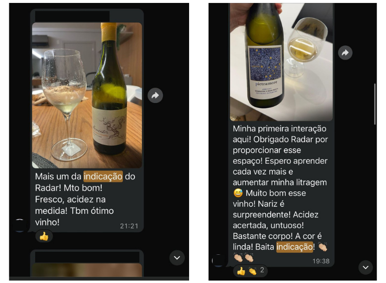 "O Radar me ensinou a beber muito melhor e a um custo menor. Hoje bebo diferentes regiões do mundo com excelente qualidade, todas indicadas pelo Radar. Me ajudou muito a sair do óbvio e clássico que somos acostumados no dia a dia."